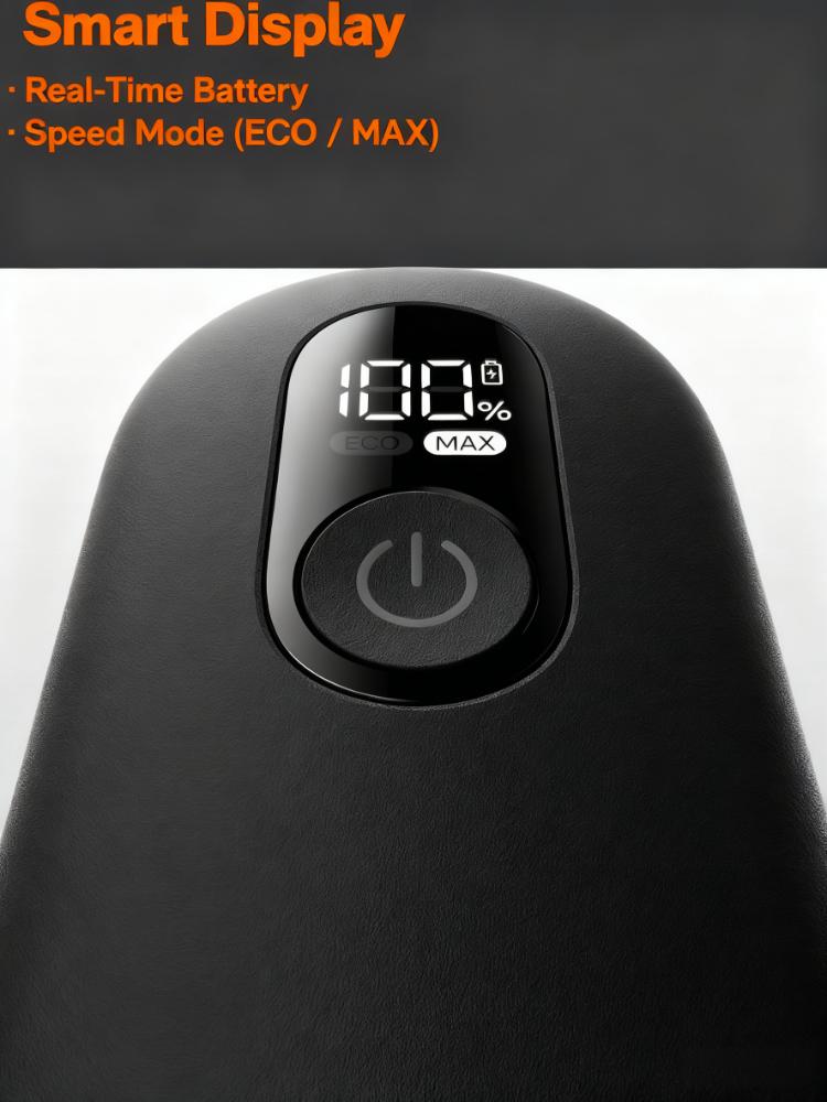 • Ergonomic & Lightweight: 0.65lb slim handle + angled design for comfortable control; smart display shows battery/speed modes.